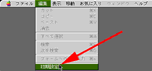 まずは、ブラウザーをダブルクリックして、 立ち上げましょう。 インターネット・エクスプローラーの場合は、 メニューバーの『編集』から 「初期設定」を選びます。 ネットスケープ・ナビゲーターの場合は、 『編集』から「設定...」を選びます。 そうすると、設定をいろいろするための ウインドウが出てきます。