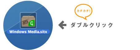 画面に現れた「Windows Media Installer」を ダブルクリックして、 WindowsMediaPlayerを お使いのパソコンにインストールします。 さきほどのダウンロードでデスクトップに保存したファイルを ダブルクリックします。 あとは、画面の指示にそって進んでください。 ![]()