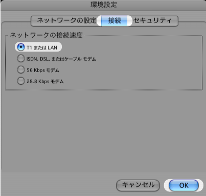 ![]() インストールができたら、 「アプリケーション」のなかに「Windows Media Player」の アイコンができているはずです。 これをダブルクリックします。 ![]() Windows Media Playerが立ち上がりましたら、 画面左上の「Windows Media Player」から 「環境設定」を開きます。 ![]() 「接続」を開いて、「ネットワークの接続速度」を 「T1またはLAN」に変更し、「OK」を押します。 以上でインストールと設定は完了です。 おつかれさまでした! |