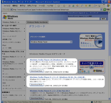 こちらから、Windows Media Player 9 シリーズ for Mac OS X を ダウンロードしてください。 ![]() ![]()