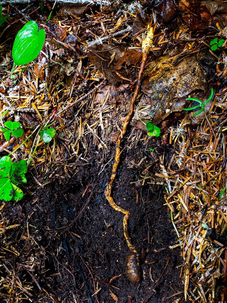 エゾゼミやコエゾゼミに寄生する冬虫夏草で、