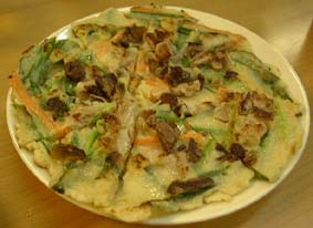 あのね、まず韓国って国はにおいがあるの。 〜春のにほい〜とかいう詩人めいたことじゃないよ。 ソウルの空港に降り立ってみて、まず驚いちゃったよ。 なに? このにおい? けっして臭いわけじゃないけど、 いいにおいともいえない。 空港のみならず、街じゅう、地下鉄の中まで このにおいなんです。 これね、食事してみて「もしかして・・・」 って気づくことがあったの。 例えば(1)焼き肉屋さんへ。 お肉を注文するとサンチュと生ニンニクがついてくる。 この、サンチュとニンニク、それぞれがおのおのの 強い香りを持ってるの。 日本のものとは比べものにならない。 これぞ、サンチュ。これぞ、ニンニクって感じ。 味だってニンニクは、日本のニンニクに比べて そうとう辛いんだよ。 例えば(2)定食屋さんへ。 クッパを注文するとキュウリとニンジンのスティックが ついてくる。 これもね、これぞキュウリ。これぞニンジン。なのですよ。 そう、たぶん韓国のにおいは色々な食材の強い香りが 混ざり合ったものなんじゃないかしら? 森川さんが韓国食材屋でご用意して下さった調味料、 ゴマ、唐辛子3種、ユッス(牛骨スープの素)、 コチュジャン、これらは、すべて韓国産だったんですけど やっぱり日本製とは比べものにならないくらい香り高い、 強い味。 これこれ、これだよ、ソウルのsoulを感じるわ〜。 (つまんないね) 食材や調味料、それぞれの持つ香りが高いってことは、 韓国の土が素晴らしいってことなんじゃないかなぁ。 まず韓国料理がおいしいのは、韓国の 土の力だと思うのですよ。 韓国料理はおいしい、大好き、初めに話したとおり。 でもね、森川さんの調理をする横で、 わたしちょっと不安になったの。 例えば、韓国のお好み焼き「チヂミ」のたれと 「ナムル」に使った調味料はわたしが見るかぎり、 まったく同じに思えたのです。 どっちもおいしいかったし、もちろん味だって 違うように思うんだけど。 これは、やっぱり友人が言うように 「辛さ」という刺激にだまされているのかしら・・・。 でね、森川さんに、改めてレシピとコツ伺ってみましたよ。 皆様、しっかり見て下さい!! ======================================== 1、チヂミのたれの作り方。 「薬味酢醤油」というのが、正式な(?)名称です。 酢をいれない「薬味醤油」でもいいのですが、 あぶらものは、ちょっと「酢」が入った方が 口がすっきりしていいと思っています。 さて、それで、「薬味醤油」なのですが、これは日本人が、 つけだれとして「醤油」をつかう時のような感覚で、 何にでもこれを(醤油の代わりに)使います。 醤油単体という方が、うんと希です。 「薬味醤油」の材料は、 ・醤油 ・粉唐辛子(慣れてきたらパウダー唐辛子がいいでしょう) ・おろしニンニク ・おろしショウガ(入れない場合もある) ・砂糖 ・刻みネギ ・いりゴマ ・ごま油 です(ほとんど、ナムルの味付けと同じです)。