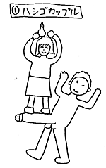 ハシゴカップルに近づいて行き固い握手をかわした。