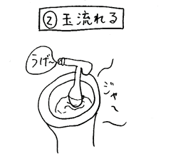 金玉を便器の排水口に押し付けると、