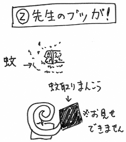 ちんちんを蚊に向けてぶらぶらさせ挑発する。