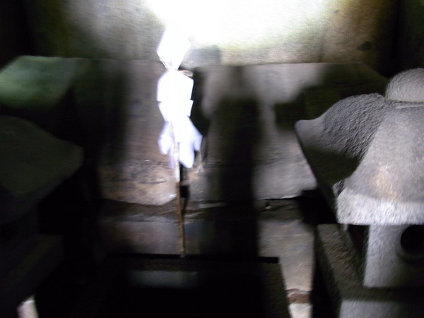 暗闇に、石灯籠と、
