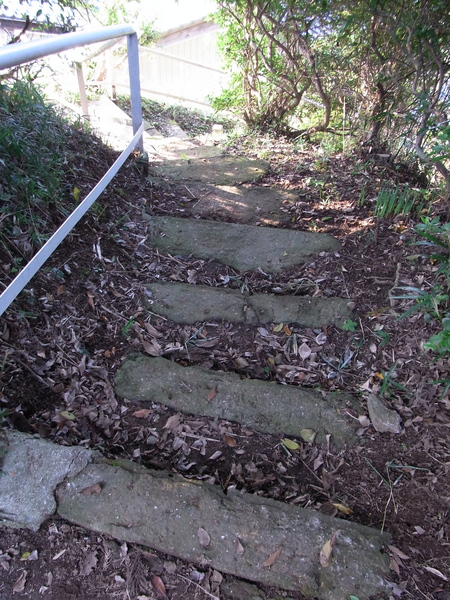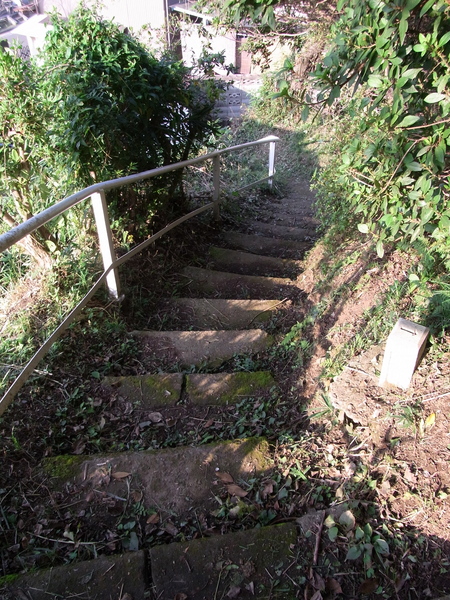 薮の中の石段をこのように登って行きます。 |