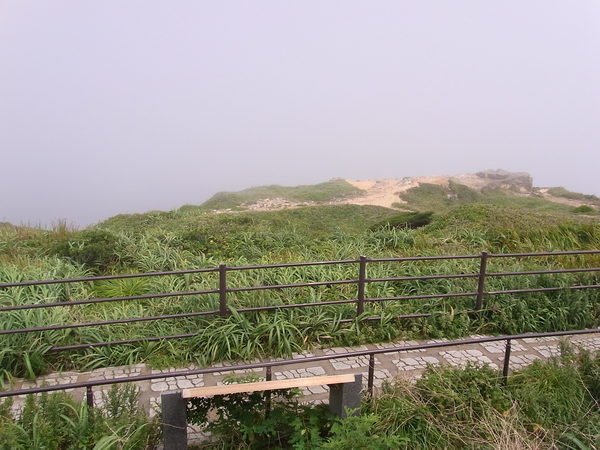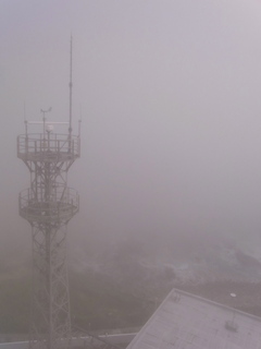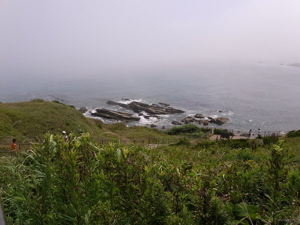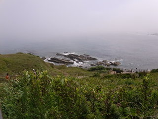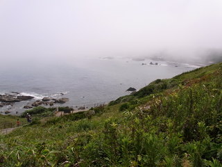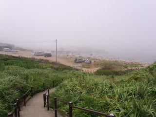 すぐ下には太平洋が広がっているはずです。 でも霧でうっすらとしか見えません。 |