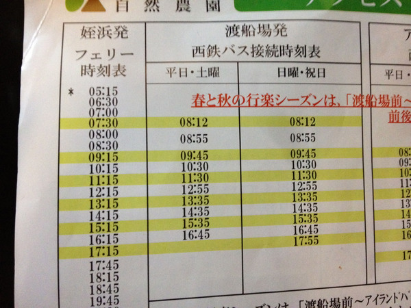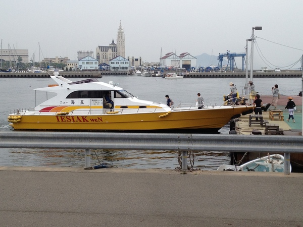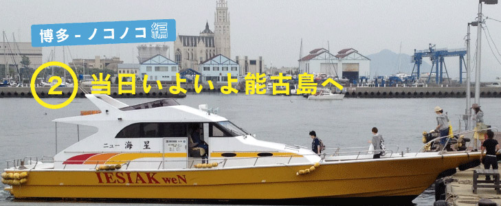 フェリーで姪浜から、65分くらいで到着するのよ。 |