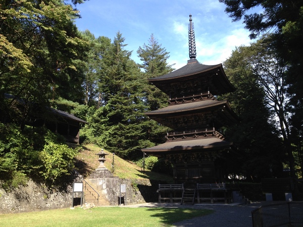 小高いところに三重の塔が見えてきました。
