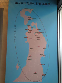 縄文時代の晩期、 つまりは約3000年前からはじまる時代に 北海道渡島半島から東北地方にかけて 盛んだった文化のことなのです。 その中心がこの遮光器土偶が出土した 亀ヶ岡遺跡や是川中居遺跡です。 この文化の影響をうけた土器は このほか日本列島の各地で 見つかっているそうでございます。 ちなみに、わたくし、ミミズク土偶は、 関東出身だったような気がします。