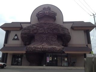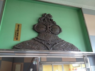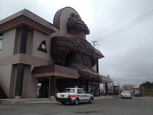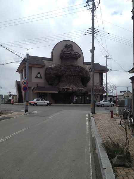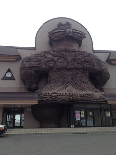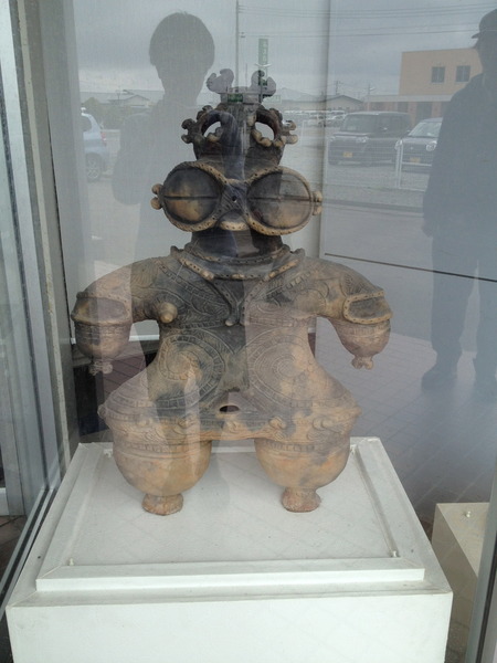 「つがる市縄文住居展示資料館」のことを カルコっていうんですが、 Kamegaoka archeology collectorsの 頭文字をとった略語だったのねー。 あっ ウィンドウの中に 遮光器土偶が立っています。 両足?! これはレプリカですね。