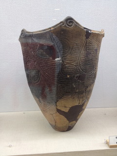 そして、 縄文時代晩期の亀ヶ岡文化圏を代表する 土器も並んでします。 遮光器土偶の身体にも同じような 文様が入っていますよね。