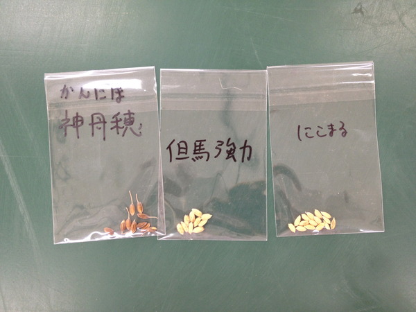 「神丹穂」 「但馬強力」 「にこまる」 ミミケンも耳に慣れない名前です。 それぞれ、思いが込められているのを 強く感じる命名な気がします。 「神丹穂」は、赤米。 2000年前くらいから存在する品種と されているそうです。 「但馬強力」のほうは、 お酒を作るのに適したお米だそうですよ。 1928年頃生まれ一度絶えたのですが、 2000年代になって復活だとか。 「にこまる」は、 九州のブランド米 「ヒノヒカリ」にかわるくらい おいしいお米を目指して作られた 品種だそう。 「コシヒカリ」の血を引く おいしい系統だそうです。