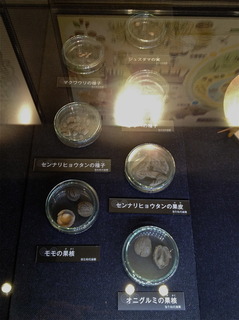 わあ! 桃だ! 桃たべてたんですね。 登呂遺跡でも。 ミミケンも桃は大好物です。 ……毎度いいますが、 水分が多いたべものは 素焼きには毒なので、 見るだけですけどね!
