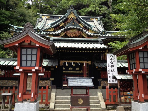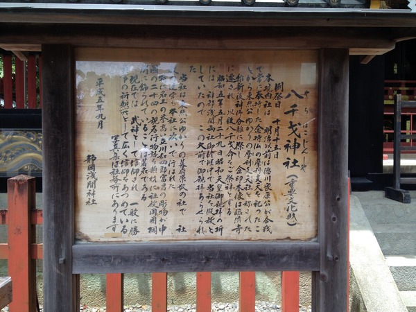 さて、 最後の写真の看板をよみときましょう。 じつはこの神社は、明治以前には 摩利支天社という名前だったのでございます。 徳川家康が個人的に礼拝していた仏、 摩利支天を祀ってあるのです。 ただ、摩利支天は仏教の守護神であることから、 明治の時代に、「神仏分離」、 つまり、神社と寺院とを はっきり区別させる政策により、 「八千戈神社」と 名前をあらためたのでございます。 明治にはいろいろあったのですね。 ミミケンもこの世にいた気もしますが、 すっかりわすれています。