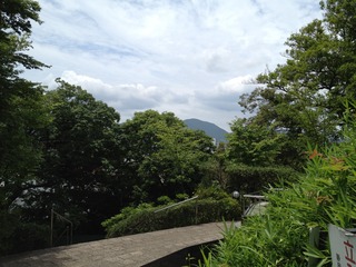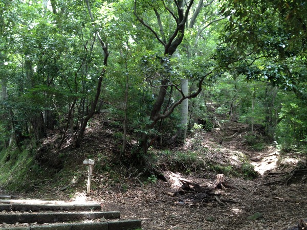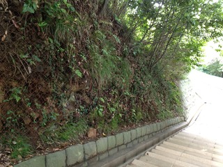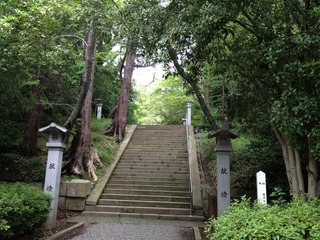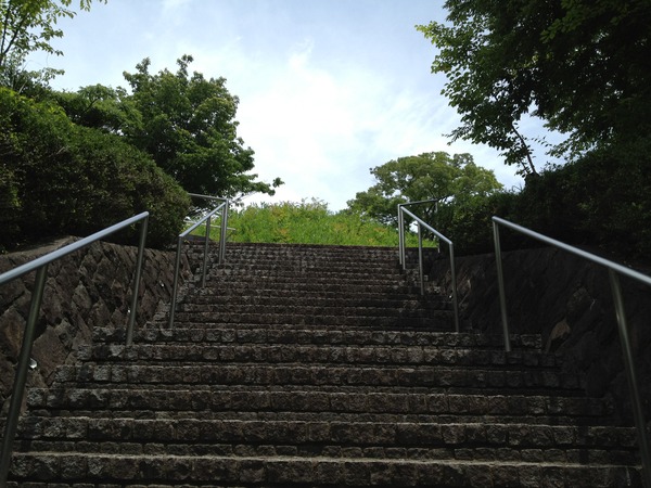 静岡浅間神社の境内にいます。 神社をひととおり廻り終えました。 そもそもの目的は古墳です! この階段を登りきれば、 賤機山古墳(しずはたやまこふん)があるはずです。