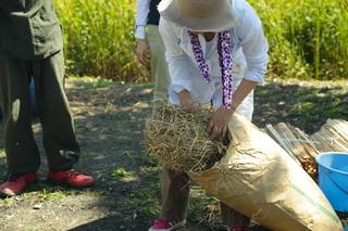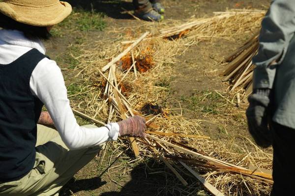 ほんとうに、稲ってすごいですよね。 藁とモミまでいろいろな場面で 大活躍です。 燃えやすいし、丈夫だし。