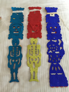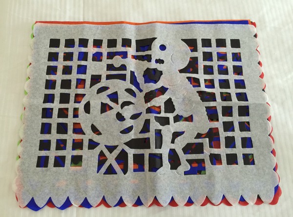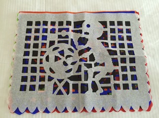 スソさんが購入した 「紙の飾りパペルピカド」は 本当にメキシコらしくていいですよ。 薄手の紙が切り抜かれていて、 それを万国旗のようにつなげて 室内の飾りとして使うものです。 「死者の日」が近くなると、 モチーフが骸骨になりますが、 季節季節でモチーフが いろいろと変化します。 パンチョをモデルにしてくれないかな、 と、たまに思います。