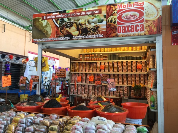 ざっくりいうと、 唐辛子と刻んだ玉ねぎとにんにくを油で炒め、 鶏肉の煮汁と挽いたナッツ、香辛料、 メキシコ産のチョコレート、塩、 焼いたアボカドの葉などをいれて ミキサーで粉砕してから 鍋で煮詰めたものです。