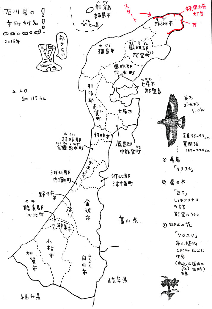 能登の先端狼煙(のろし)で、遅めのお昼ごはんを食べたあと、 車は海岸線の道を南下していきます。