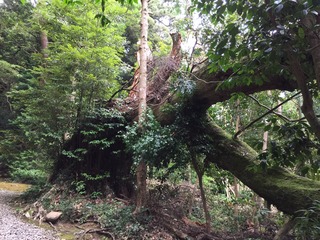 古墳部といえば、土の茶色、石の灰色、 葉っぱの緑です。 今回も立派な三原色が現れています。 古墳と石室の場合が多いのですが、 こんかいは神社にて三原色ですね。