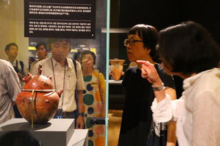 さて、まいどおなじみ、 スソさんのかばんの中に潜む土人形、 ミミズク土偶の健太郎こと、 ミミケンです。 今回は、こんださんも登場しますので、 ミミケンは、静かに展示物のデータを カバンのなかから叫びます。 これは、 『深鉢型土器』 山梨県甲州市殿林遺跡から出土。 縄文中期。高さ72cmです。