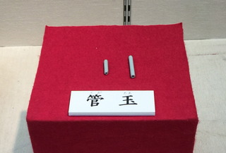 ちょっと真面目にせつめいしなくちゃ。 三輪玉というものは、 奈良県桜井市三輪の大神神社の祭祀遺跡から 多く発見されているものです。 太刀の柄に飾りとしてつけたもので、 水晶製のものが多いが、 中には金属製のものもある。