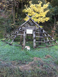 ミミケンをよだれでベトベトにする 天敵、だんごめ。 お前は、足があって自由にあるけていいな! ミミケンも竪穴式住居にはいりたいぞ。