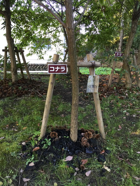 コナラは、どんぐりが取れるから 縄文人にとって大切な植物なんですよ。 先にでてきた、トチの実や ドングリ、クリなんかが 縄文人がたべていたものです。 きのこもたべていたかもしれません。 「きのこ」そっくりの土製品が、 縄文時代中・後期には出土していますが、 主に東北地方でした。 それに、そっくりっていうだけで きのこなのかどうかはわかっていません。 でもミミケンは、 おいしいものに貪欲な人間が きのこをたべてないはずはないと思います。 ただ、この写真のきのこが たべられるかは‥‥わかりませんし、 みなさんも、専門家がいないときに 闇雲にきのこは食べないでください。 毒きのこかもしれないのです!