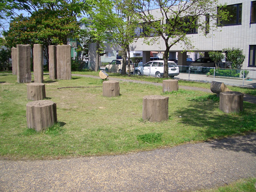 手前には6本2列の柱が、低く復元されています。