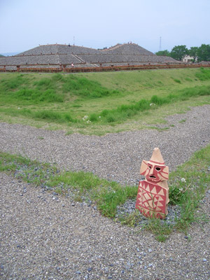 外堤の角には盾をもった埴輪が魔除けに立っています。