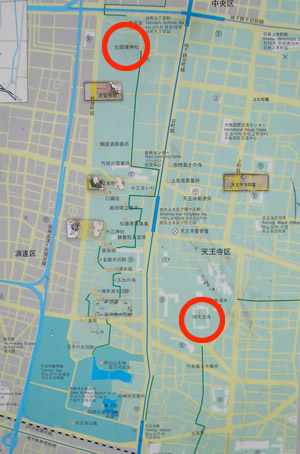 生国魂神社と四天王寺がほぼ南北に並び