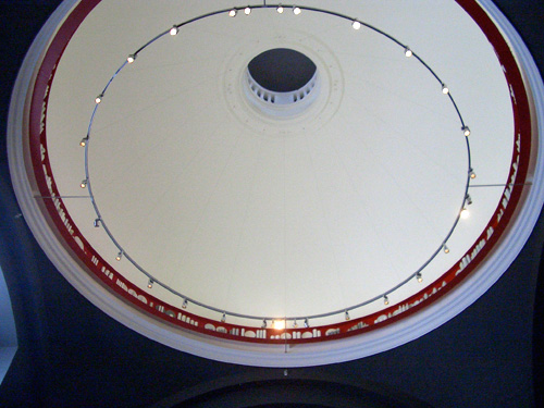天井には、白い陶器が丸くディスプレイされています。