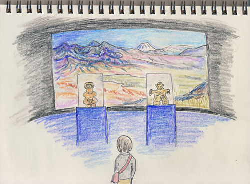 縄文のビーナスと仮面土偶が並んで展示されていました。