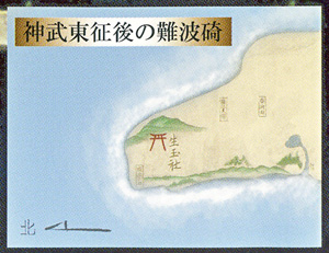 あとで生国魂神社のパンフレットを見ていたら こんな絵が小さく載っていました。 難波碕(なんばみさき)だったのです。