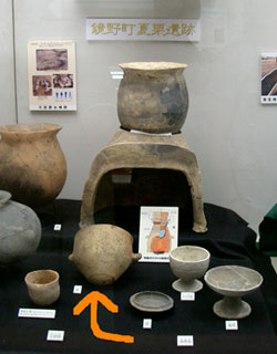支脚の土器(かまど)の上に