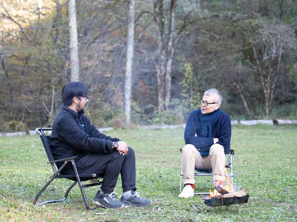 雨が心地よく感じたら、キャンプが好きになった証拠。ゼインアーツの小杉敬さんと糸井重里が夕暮れのキャンプ場で話す。