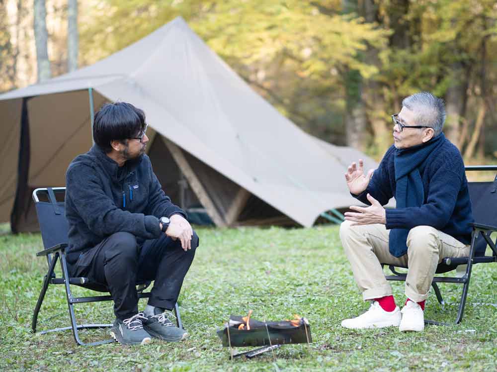 雨が心地よく感じたら、キャンプが好きになった証拠。ゼインアーツの小杉敬さんと糸井重里が夕暮れのキャンプ場で話す。