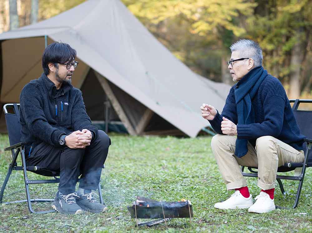 雨が心地よく感じたら、キャンプが好きになった証拠。ゼインアーツの小杉敬さんと糸井重里が夕暮れのキャンプ場で話す。