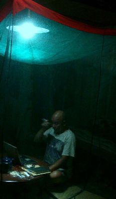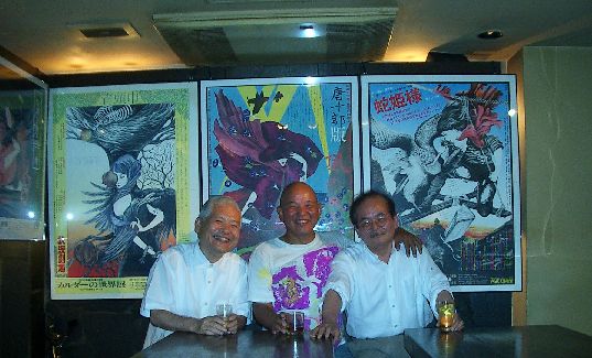 | 柔らかいカプセル 八畳間ほどの部屋で、 四枚だけ(つまり二坪分)敷いた古畳の上で、 帯同するパソコンを立ち上げ ダッタン茶を煎じ、 愛用のアラビア社製の土瓶、 スケッチブックや本が乗っかり、 メシを喰ったり本を読んだり メモしたりする卓袱台が、 オレが山で棲息するときの中心部である。 モスキー・ムラタが送ってくれたひと坪用の蚊帳は、 はじめほんの遊びのつもりで吊ってみて、 すぐに畳むはずだったのだが、 中心部の半分を占領して圧せば向こうに膨らみ 引っぱればこっちに自在な変形する、 この<柔らかいカプセル空間>の虜になっていた。 しかも、ひと坪という広さは 一個の生命体を囲うにはイイ大きさだ。 ![]() ガキの頃から狭い処に身体を押し込める習性が すでにオレにはあって、 押入やゴミ箱の暗闇に人知れず潜んで、 隙間から差し込んでくる 外からの細いヒカリを眺めながら 眠ってしまったものだ。 そんな故郷を捨て、東京に紛れ込んだ六〇年代は、 親から遠く離れるための旅だったのだ。 七〇年代、アングラ華やかな新宿の花園神社境内で、 唐十郎率いる赤テントの状況劇場で オレは舞台装置やB全判のポスターなど 美術を担当するようになっていた。 主宰の唐十郎氏は、 無名なささくれを持てあまし気味だった当時のオレを、 ゲージツ家として認知してくれた唯一の恩人である。 テント芝居と共に京都、大阪、九州などの 空き地に移動する南下興行にまで同行して、 ついにはレバノン・ヨルダン・シリアの砂漠にある パレスチナ・キャンプでの公演にも 用心棒兼絵師として、荒々しい日々をおくっていた。 座員一同で張る興行先の空き地に忽然と現れる 赤いテントの茣蓙を敷きつめた桟敷で、 一服しながら開幕ベルを待つ夕暮れ前のひととき、 テントを透かすヒカリは充ちて 役者たちの貌をますます昂揚させていた。 客が多ければいくらでも膨らみ、 移動するときには小さく畳む自在な皮膜の空間は、 胎内にいたときを想わせるような ゾクゾクさせる何かがあった。 この夏、奈良での<ヒカリ繭>の制作手順やら、 揺らぐ裸火の仕掛けやらを 頭蓋内でシミュレートしたり、 <華厳>本を読み、 眠くなれば持ち込んだ枕でうたた寝、 目覚めてばダッタン茶を飲む。 ひと坪の蚊帳のなかでたちまち一日は過ぎて、 一週間は過ぎていた。 摘んだ裾をパタパタさせ <柔らかいカプセル>を出るとき、 小さく縮める身体に 『この所作は覚えがあるのだが…』。 蚊帳のなかに消し忘れたタバコの煙が揺らいでいた。 茶室の異空間に入るにじり口での格好にちかいのだ。 二、三〇年前まで日本の家庭には必ずあった 蚊帳というカプセルは、 家族がうち揃って慎ましく眠りにむかうための 美しい家具だったのだ。 蚊もいない朝から晩までこの異空間で 心地良く過ごしていた。 しかし、ゲージツ家はうっかりしてはイケナイ。 心地良すぎてこのまま ズーッと居てしまいそうだったが、 蚊帳のジカンに飽きてもいた。 『新宿に出てみるか…』 久しぶりに独り声が出た。 アズサから桑原のカマル社に電話。 出た。 「立派なアングラ本が出来たというじゃないか」 「悪い悪い、まだ全部刷り上がってなくて 送れてないけど」 催促の電話と勘違いしたらしい。 「そんなコトいいんだ、久しぶりに一杯やるかい」 新宿で呑む相手に選んだのだ。 「いいねぇ」 「もうすぐ新宿に着くから六時、NADJAだ」 ![]() ![]() 七〇年代新宿アングラのジダイ、 彼は<現代詩手帳>の編集長を辞めて <月下の一群>という雑誌をつくった。 唐氏たちの過激な文章を載せ 赤瀬川原平さんやオレや南伸坊も そこで絵を描いていた。 もちろんゼニになるわけはなかった。 その彼が、六〇年七〇年代の アングラのポスターを編集しパルコ出版から出した <ジャパン・アバンギャルド>という大型の本に、 三十年前のアングラ・ジダイにオレが描いた 状況劇場のポスターが十二枚も納まっているらしい。 いつもは殺風景なNADJAが極彩色だった。 額装したポスターが処狭しと貼ってある正面に、 懐かしい<風の又三郎><青頭巾> <蛇姫様>があるではないか。 無数の鉛筆の線を面にして こんな繊細な絵を描いていた時期もあったのだ。 二十四年の寿命を終えたGARAの親元だった イラストライターの南伸坊にも、 埋葬のコトを伝えるべく電話しておいた。 南もあの頃、漫画雑誌<ガロ>の編集長で オレの劇画を載せたりしていたのだ。 ストイックな<柔らかいカプセル>から、 ショーチューやスコッチでアングラの 賑やかな空気になっていった。 それにしてもまだ黒々とあった頭髪は、 ハゲと見分けがつかないスキンヘッドに、 白髪頭に、薄らハゲ、 みごとに三十年のジカンが現れていた。 『ジャパン・アヴァンギャルド ──アングラ演劇傑作ポスター100──』 |