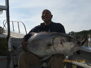 老いた海![]() 午後一時を少しまわった陽射しに、 もう真夏の威力はなかった。 『朝のチャンスを逸したオレには、 もう目はないかもしれない』 と思いながらも 『いや、もしかして‥‥』 の根拠のない希望もあった。 まだ頭蓋の半分を占めていた朝の失敗とは、 ドラッグ調整があまくて折角のチャンスを、 根に潜られてしまった。 何とか引っぱり出したが、 岩で傷ついたラインはあっさり切れてしまい、 正体を見ず終わったのである。 『二〇Kgくらいのヒラマサだったかも しれなかったなぁ‥‥』 初歩的な失敗をまだ悔やんでいた。 小さめのムロアジを鉤に掛け投入した。 海の色がなんだかイヤに黒ずんできていた。 見る見る海が年老いていくような あのインディゴブルーは今でも思い出す。 オレのリールは手巻きである。 十メートル毎に染め分けられている ラインの色を目で追っていた。 ムロアジが海底に着いた。 「五〇メートルないなぁ」 糸ふけを取り、 底から三メートルほど巻き上げて深さは四十五、六。 ボンヤリと見ていた竿先がなんと突然暴れだし、 竿先が海面に刺さりそうだ。 下腹に竿尻を当ててリールを巻き始める。 「来た来た来た! 巻いて! 巻いて!」 力石のスピーカーが興奮して叫んだ。 <力石徹>によく似た生真面目な船長だ。 五メートルも巻いたところでビクともしなくなっていた。 「キーパーに付けたままポンピングしながら、 巻けるだけ巻いて!」 力石も必死である。 「巻きたくても巻けないんだ」 根掛かりかも知れないと思いはじめた。 あんなに暴れた竿先が ヘヤピンのようになったまま動かないのだ。 しかしハンドルに生き物の生活反応が伝わってくるし、 確かに何かいる。 オレはビクともしない綱柱のように 甲板に踏ん張っていた。 いっぱいに締め込んであったリールから 引き出されていくラインの色が変わっていく。 二〇分は経っていた。 やっとハンドルが巻けるようになってきた。 まだ二〇メートルはあるが確かに巨大な魚である。 「サメかなぁ」 ちょっと弱音を吐いた。 「最後まで、姿を見るまで諦めたらダメだよ! 巻いて巻いて」 高校時代に甲子園を目指した投手だったという 力石がまた叫ぶ。 久しぶりの生な<スポ根>スピーカーに、 折れそうになるオレの気が奮い起きた。 最後のチカラで巨魚が右に左に激しく動き、 オレの竿先を振り回す。 船長が竿先に合わせ船を前進後退させ 巻き取りを助けてくれた。 最後まで油断は出来ない。 黒っぽい海から赤っぽい巨大な魚体が浮き上がってきた。 「なんだぁ、こりゃ」 オレは別の世界に迷い込んだような妙な気分になっていた。 「デカい、カンパチだよ。 これは赤ブリっていうんだ」 力石君が操舵室から飛び出して来て、 ギャフの鉤を深々と打ち込んで やっと甲板に引き上げてくれた。 デカカンパチにもうはね回るチカラも 残ってないらしかったが、 オレも気が抜けて甲板に座り込んだ。 港に戻ると民宿の女将さんや酒を持った親父さん、 近所のヒト等も駆けつけていた。 大工の棟梁もいてお祝いに寸法を取り始めた。 一七〇センチ×四〇センチ×四〇センチの カンパチ用に作ってくれた箱は、 オレの棺桶にも使えそうだった。 あんな浅い海で、しかも五〇Kgのデカカンパチを オレが釣り上げるなんて。 オレは大きな魚体を棺桶に収め、 隙間に氷を詰め込みながら、 ちょっと酸っぱい気分になった。 何でオレだったんだ? ![]() ホームページの内容が大充実にリニューアル。 充実した作品群をお楽しみください。 http://www.kuma-3.com/ |
