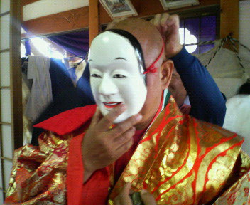 | つかの間、姫になる 大ヒラメの海から山岳のヒトになって、 オレはワラガイ教授から頂いた 〈M.C.エッシャーからのメッセージ〉という 4冊セットの豪華本を眺めていた。 彼が解説、編集したこの本は 数あるエッシャー本の中でも、図版の多さでも 資料としてもピカイチである。 ラセンに沿って生成し消滅する生命や、 〈ホォスフォレーセントの海〉の 有限平面の無限を夢想していると、 ピーヒャラピーヒャラの音曲が降ってきた。 明るい陽射しの波動に乗った神楽の笛、太鼓である。 音に導かれながら、 そうだ! 今日は村人が神楽を奉納している お田植え祭りだと思い出す。 境内は陽気に誘われた爺婆、子供らで賑わい、 神楽殿では〈金山〉が舞われていた。 よそ行きを着たスダさんは太鼓を叩いてる。 お神酒やオンナらが作ったお重が並んだ拝殿に案内され 上がりこんで馳走になっていた。 酔った総代が 「次は珠とりずら。せっかくだからお姫さんやれしぃ」 と言う。 『音曲に誘われてきたのも何かの縁だ』 オレも調子に乗った。 総出のオトコ衆等にキラを着けられたオレは、 たちまち大きな図体のお姫様になった。 面を着られた眼の孔から、 花の下に跳ね回る子供らや婆が揺らいでいた。 いつもは閑かな山岳の世界が華やいで見えた。 面を外すとまた村の景色の戻ったのだが、 幾ジダイも繰り返されてきた このユルイ山岳芸能に参加していたのだった。 ![]() |