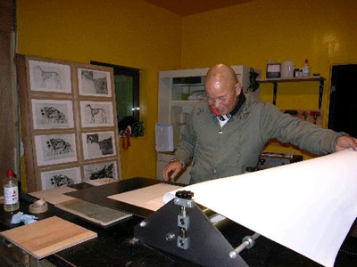 | 薄い彫刻 今ひとつパッとしないまま FACTORYに引きこもったクソ暑い夏。 書斎机(メシも喰うし本も読む)でのシゴトは夜。 尖った火先は鉄板を裂き、 地道で熱い<鉄三昧>は、 もう冬なんぞ来ないと思った山岳地帯にも、 武川村米の刈り入れを済ませたスダさんが 薄い彫刻としてのエッチングは<鉄のオブジェ>である。 オレのオブジェを刷る援軍は、 溜まっていた版を刷る。