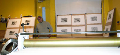 冷え込んだエッチング部屋。 ニードルで線を刻み込む銅板の 底光りに吸い込まれながらも、 ますますヒカリのイメージを追い求めている。