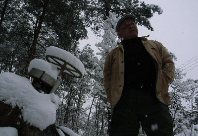 雪に包まれていた鳥居平の葡萄棚の傍で、