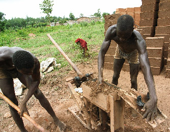 南部のCotonueの土と煉瓦職人をここまで呼んで、
