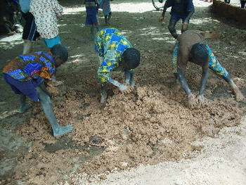 校庭には赤土だけを固めた500個の煉瓦が並んでいた。