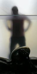 いつもは明るい彼の深いしわに沿って顎から滴った。