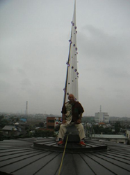 高所恐怖症も忘れてオレも若い鳶の衆と上空に上がって